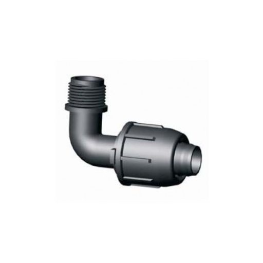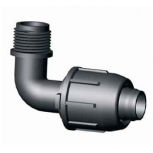 Könyökidom külső menettel 16 x 1/2, LP csövekhez és csepegtető csövekhez.