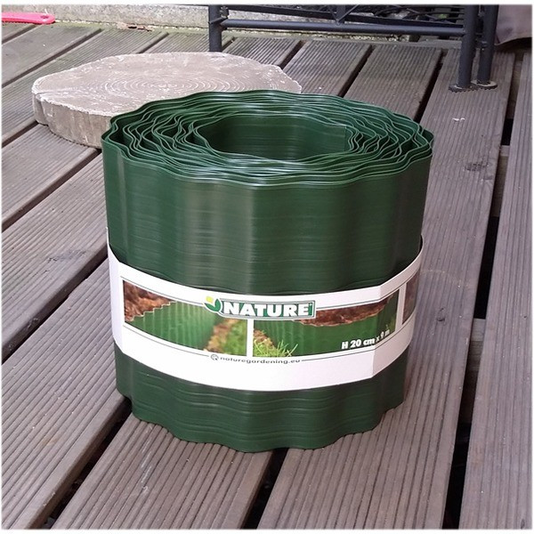 Polyetilén ágyásszegély, gyepszegély, fűszegély, zöld. Könnyen kezelhető, egyszerűen és gyorsan lerakható.