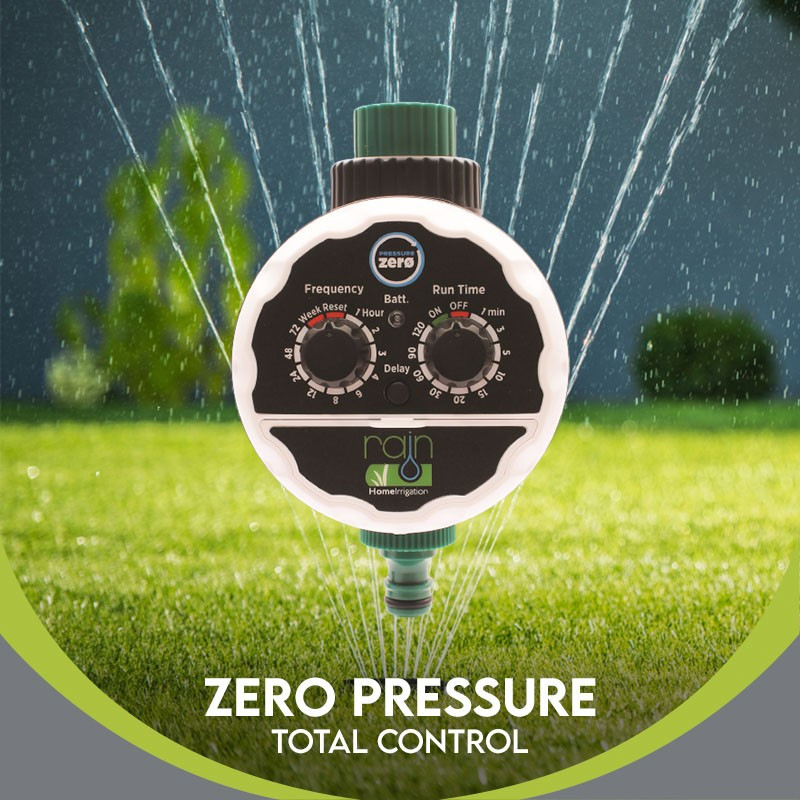 A Rain Pressure ZERO egy 1 zónás elemes csapvezérlő. Elsősorban kisebb kertek, virágoskertek vagy virágládák öntözésére kifejlesztett megbízható automatika. Programozása rendkívül egyszerű, úgy lett megtervezve, hogy a beállításokat bárki elvégezhesse rajta.