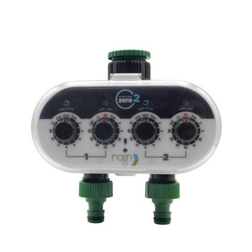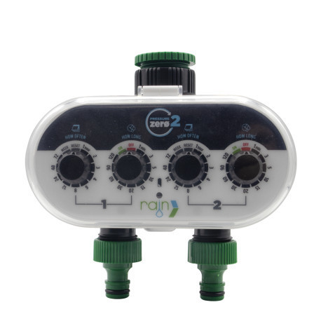 A Rain Pressure ZERO egy 2 zónás elemes csapvezérlő. Elsősorban kisebb kertek, virágoskertek vagy virágládák öntözésére kifejlesztett megbízható automatika. Programozása rendkívül egyszerű, úgy lett megtervezve, hogy a beállításokat bárki elvégezhesse rajta.