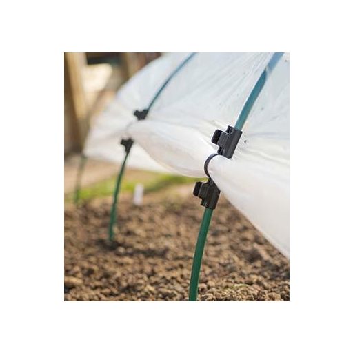 Kettős rögzítőelem, amely a helyén tartja a tartórudak mentén felhajtogatott fóliát vagy hálót.