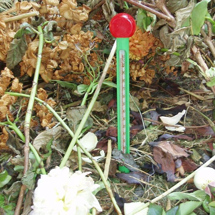 Talajhőmérő. A talaj vagy komposzt felszín alatti hőmérsékletét tudja mérni.