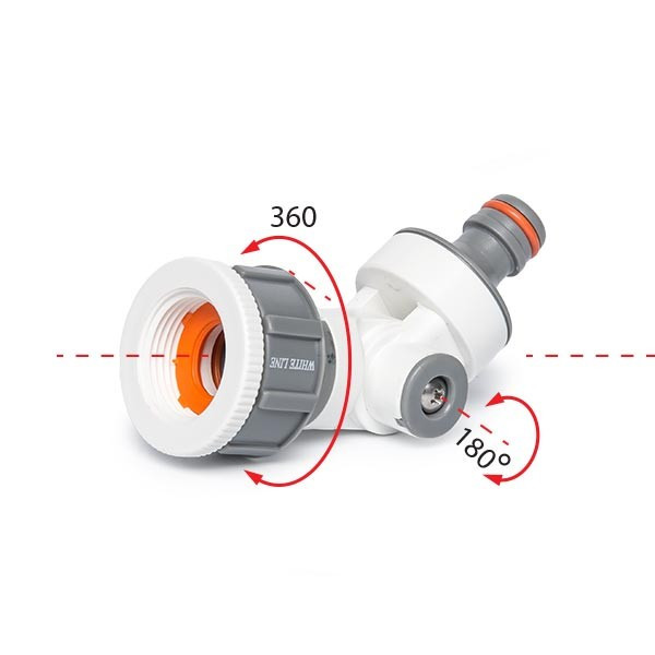 A Bradas White Line WL-2194 csuklós csatlakozó lehetővé teszi a tömlő kerticsaphoz való csatlakoztatását. A hagyományos csatlakozóktól eltérően, szabadon változtatható a tömlő iránya. A csatlakozó 360°-ban elforgatható és állítható a dőlés szöge a csaptelep és a tömlő között. Ezáltal megakadályozza a tömlő megtörését és elcsavarodását a vízcsapnál.